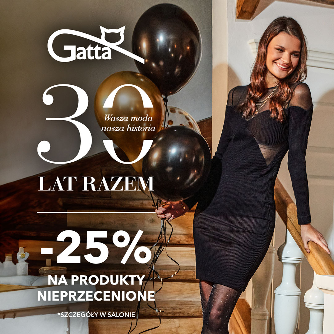 Strona głowna » Promocje » 30-lecie marki Gatta 30-lecie marki Gatta Świętuj razem z nami! 30- leci marki Gatta. Z tej okazji zapraszamy do naszych salonów. Czekamy na Ciebie.