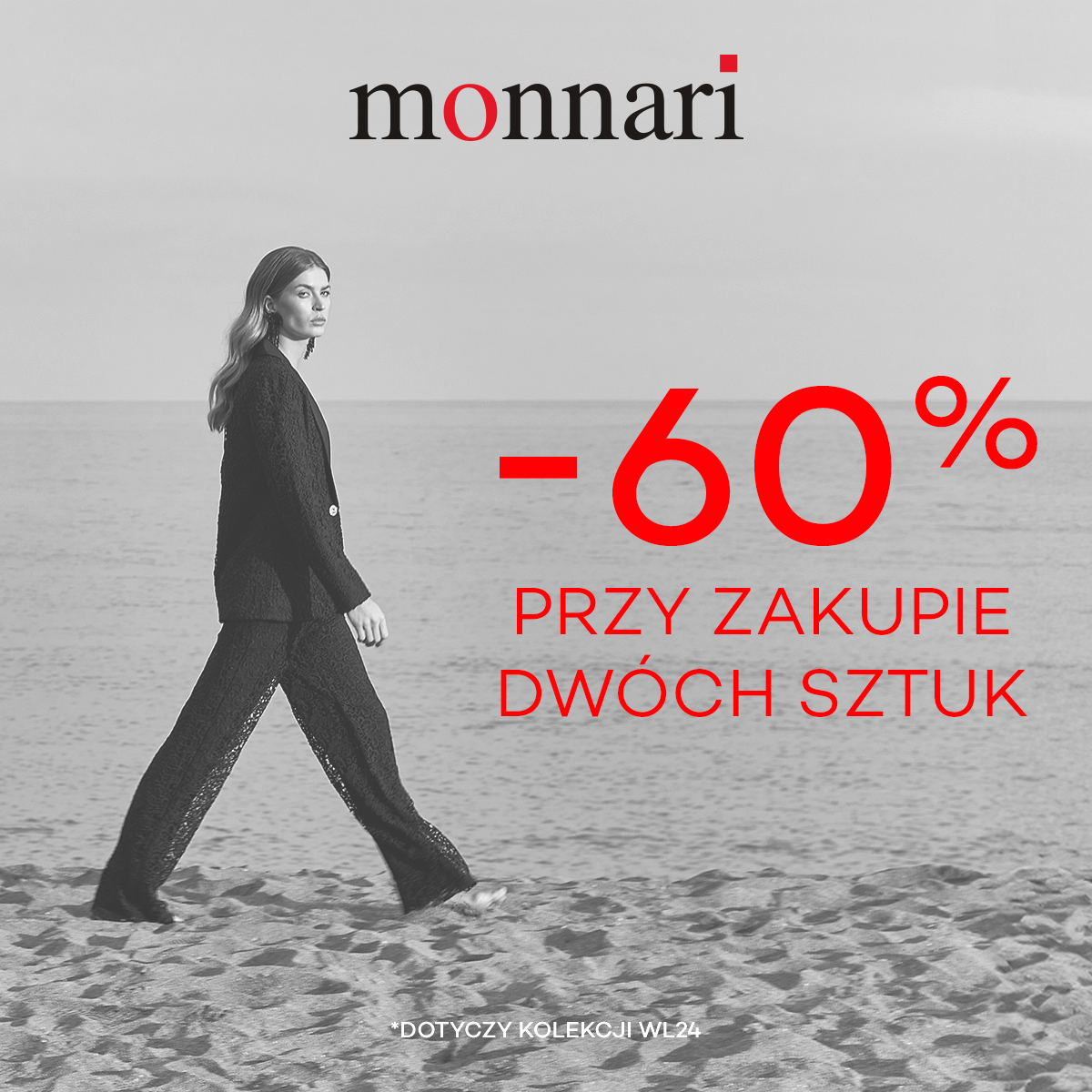 Strona głowna » Promocje » -60% przy zakupie 2 sztuk w sklepie MONNARI -60% przy zakupie 2 sztuk w sklepie MONNARI Zrób zakupy w sklepie Monnari, a otrzymasz rabat -60% przy zakupie dwóch sztuk! Więcej informacji uzyskasz w sklepie.
