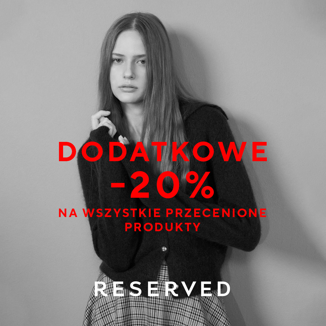 #ReservedForMe • Nie przegap okazji! Dodatkowe -20% na wszystkie przecenione produkty. Online z kodem: EXTRA20 i w sklepach stacjonarnych.